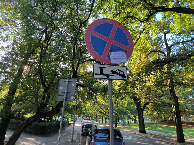 Znak zakazu zatrzymywania się zobaczyli w czwartek kierowcy na początku ul. Szczerbcowej (od strony ul. Starzyńskiego) w Szczecinie. Wyraźnie ustawiony tymczasowo. Do tego opatrzony kartką, że obowiązuje w określonych godzinach. Ale sam znak jakiś przekrzywiony...