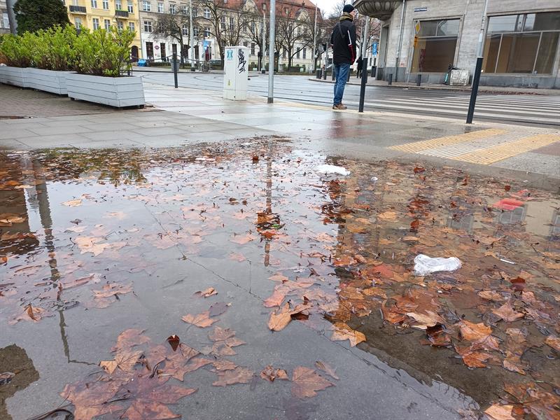 Kłopot mają piesi czekający przed przejściem przy Bramie Królewskiej w Szczecinie. Po każdym deszczu tworzy się tam wielka kałuża. Czekającym na zielone światło przechodniom pozostaje skrawek chodnika. Zdaniem naszego Czytelnika sprawą powinny zająć się...