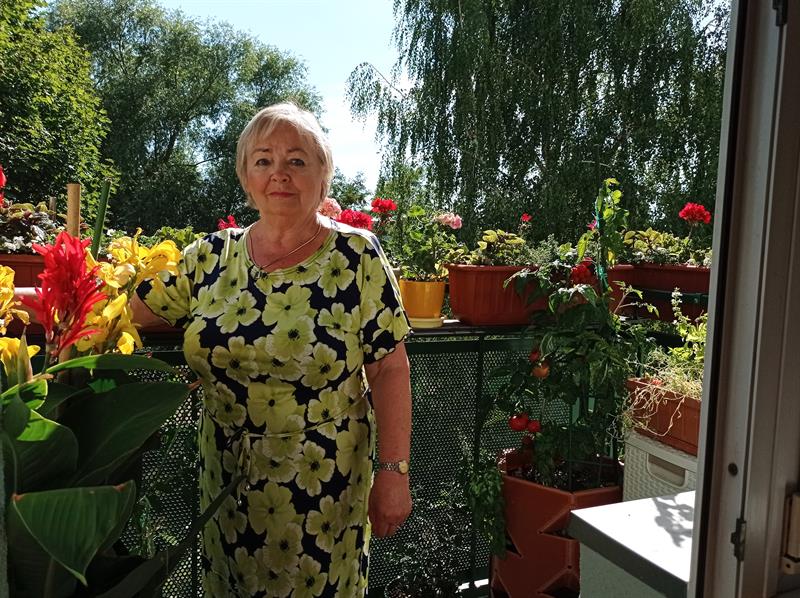 Choć powierzchnią niewielki, to pani Wiesławie Minkowskiej, swej właścicielce, daje dużo radości. Niczym obraz można go oglądać o każdej porze dnia od wewnątrz z pokoju. A tłem dla niego są soczyście zielone korony drzew, rosnących wzdłuż przyblokowej...