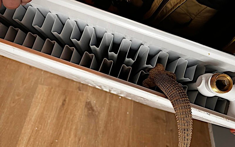 Waran zaklinował się w kaloryferze w jednym z domów w Kobylance, pow. stargardzki. Na ratunek wezwano strażaków. - Zawsze wypuszczamy go z terrarium pod kontrolą - mówi Magda Juszczak, właścicielka gada. - Nie spodziewaliśmy się, że może wskoczyć od spodu...