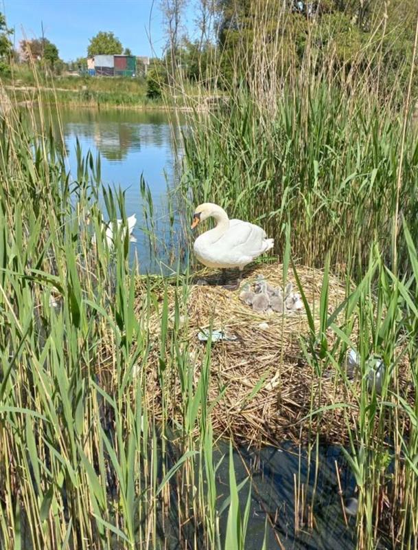 Łabędzica jest przerażona. Całym ciałem stara się ochronić pisklęta przed zagrożeniem. Nie tyle przed drapieżnikami, ile przed domorosłymi paparazzi, którzy robiąc selfie, niemal wchodzą jej do gniazda. Nad Jelenim Stawem ludziom najwyraźniej brakuje...