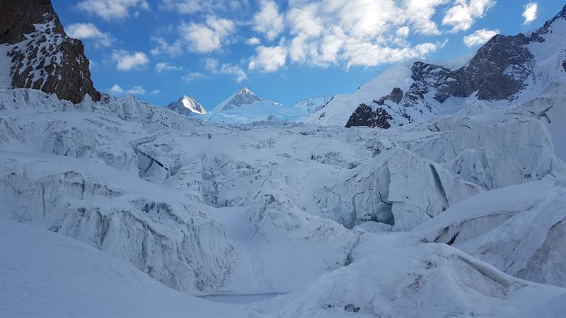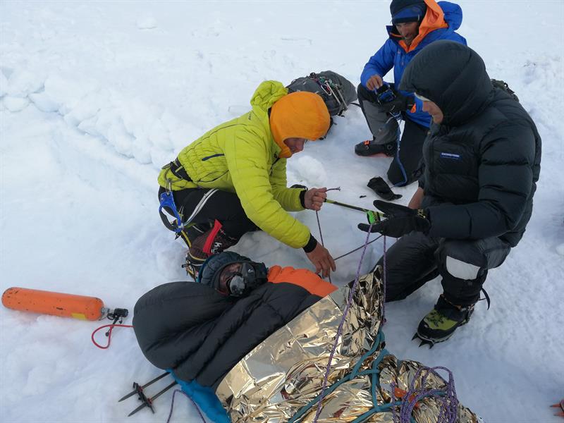Obóz w górach zasypany jest grubą czapą śniegu. Ten śnieg trzeba odgarniać, by jakoś funkcjonować, a ponadto trzeba wyznaczać drogę w górę, by zakładać kolejne bazy przed atakiem na szczyt. Skład grupy szybko się uszczupla. Pierwszy odpada wspinacz, który na lodowcu wpadł w szczelinę - i to mu wystarczyło, by wrócić do domu.