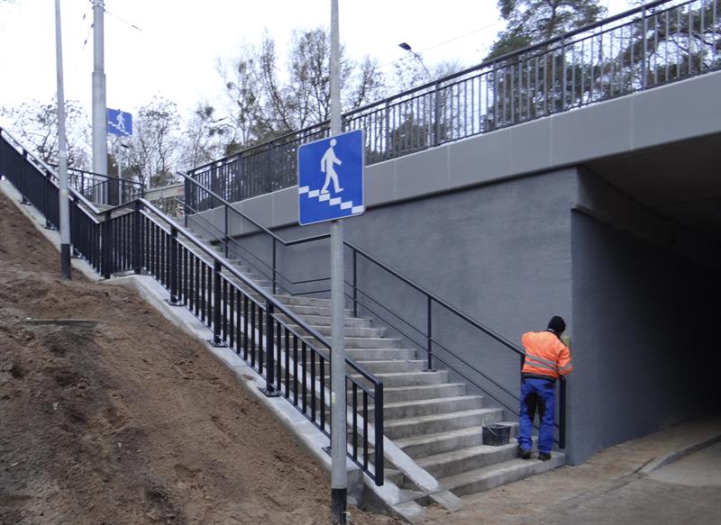 Przez ostatnie kilka tygodni trwały tam prace wykończeniowe przy nowym wiadukcie nad aleją spacerową będącą częścią szlaku między Arkonką i Syrenimi Stawami. Zamontowane zostały bariery bezpieczeństwa oddzielające na jego wysokości jezdnię od pasów chodników i ścieżek rowerowych oraz balustrady zewnętrzne. Uporządkowane zostały skarpy po obu jego stronach przy zbudowanych w nich nowych schodach. Teraz jeszcze nowa konstrukcja wiaduktu poddawana jest kosmetyce - nakładana jest na nią warstwa farby antygraffiti. Sprzyjająca tej zimy aura pozwoliła też na dokończenie rozpoczętych we