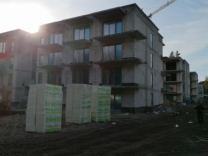 Okazało się, że miałem rację i budowa apartamentowców w Pogorzelicy zbliża się ku końcowi. Oficjalnie powstaje tu „zespół sześciu budynków zakwaterowania" (taki zapis widnieje na tablicy informacyjnej), ale są to apartamenty - o czym świadczą reklamowe ogłoszenia spółki Master House, która sprzedaje je jako spółka Baltic-Park.