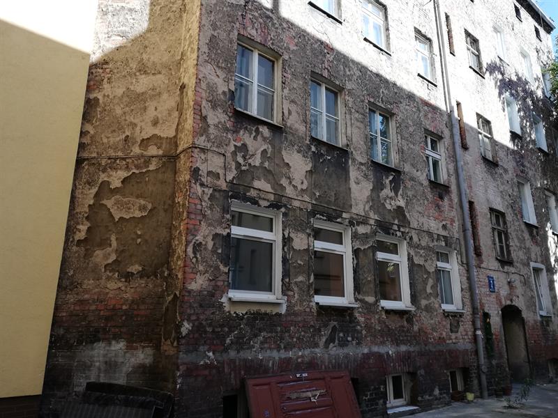Pod tym adresem mieszczą się dwie kamienice należące do miasta. W 2014 roku odremontowano elewację jednej z nich, potem miały być wykonane elewacja i ocieplenie kamienicy vis-à-vis. Jednak do dziś prace nie ruszyły. A są niezbędne, bo - jak mówią lokatorzy - w mieszkaniach jest zimno i wilgoć, rachunki za ogrzewanie ogromne, na korytarzach sypie się tynk.