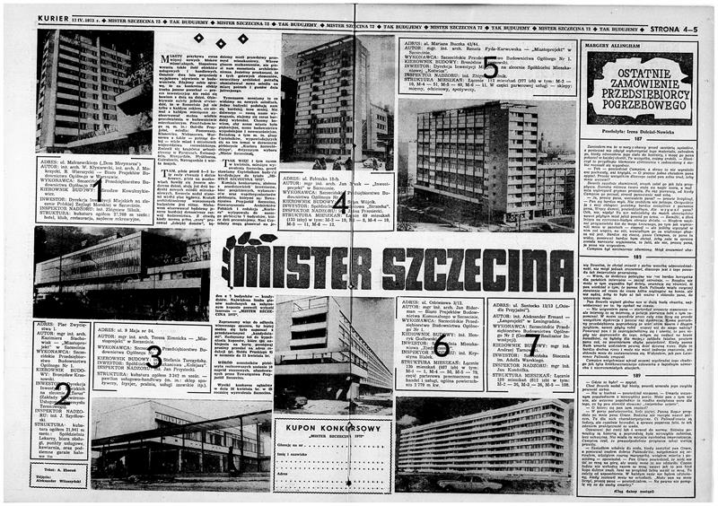 „Ostatnie dwa lata przyniosły wyjątkowe ożywienie w budownictwie. Zdajemy sobie sprawę, że na konkretne efekty trzeba jeszcze poczekać - proces inwestycyjny nie rodzi się bowiem z dnia na dzień. Obiektywnie jednak należy stwierdzić, że w Szczecinie już nie tylko z każdym rokiem, ale niemal z każdym miesiącem zaobserwować można wielkie przeobrażenia w budownictwie mieszkaniowym" - pisali dziennikarze „Kuriera" w 1973 roku.