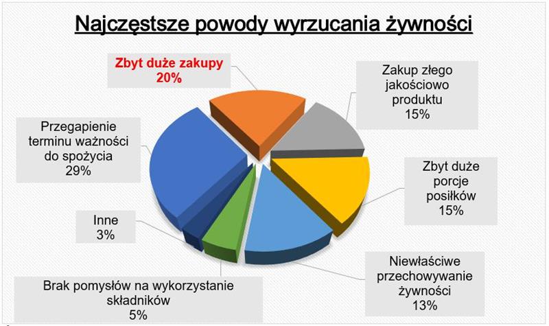 Według Polskiej Federacji Banków Żywności, do jednych z najczęstszych powodów wyrzucania żywności należą niewłaściwie zaplanowane zakupy. Na wykresie obok widać, że przyczyna ta stanowi aż 20 proc. wszystkich powodów! Ale co to znaczy w praktyce? Oto historia przeciętnego współczesnego Polaka, z którym niejeden z nas może się identyfikować.