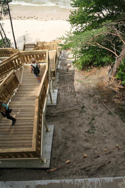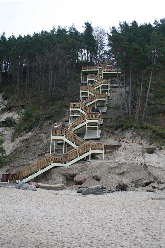 Schody wybudowano sześć lat temu. Powstały w miejscu, gdzie w połowie lat 90. ubiegłego wieku stare zejście zabrało morze. Ówczesny dyrektor WPN Ireneusz Lewicki wybudował nowe zejście prowadzące z klifu na plażę o wysokości 61 metrów. „Po wejściu na szczyt klifu z lewej i prawej widzimy tylko las, a z przodu kawałek morza. Potem możemy pójść w prawo leśną ścieżką do Międzyzdrojów. Ot, taki punkt widokowy, z którego widać jedynie kawałek morza” – pisałem sześć lat temu. Morza było widać tylko kawałek, bo zasłaniał je rosnący po obu stronach las.