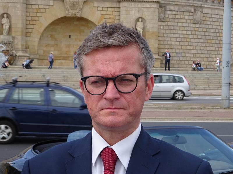 Rozmowa z wiceministrem gospodarki morskiej i żeglugi śródlądowej Grzegorzem Witkowskim przed „Darem Młodzieży" podczas żeglarskiego pożegnania lata w Szczecinie w ostatni weekend