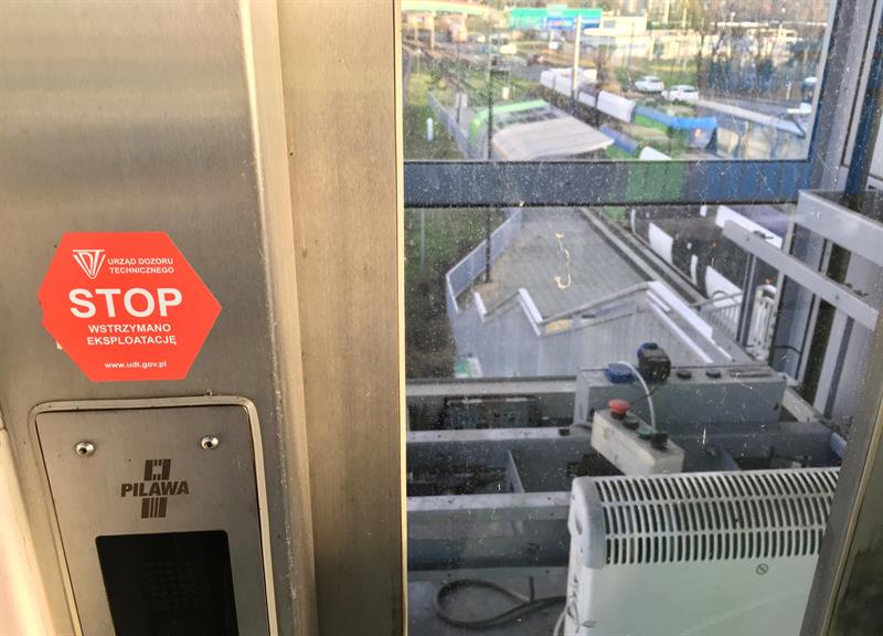 Z użytkowania wyłączone zostały dwie środkowe windy. Wiosną ubiegłego roku Urząd Dozoru Technicznego do czasu usunięcia usterek nakazał wyłączenie ich z eksploatacji. Stwierdził wówczas m.in. obniżenie się szybów wind w stosunku do górnych spoczników wraz z kątowym przemieszczeniem konstrukcji szybów, trwałą deformację płyt obudowy szybu na wysokości górnego spocznika, przemieszczenie drzwi z uwagi na powstałą deformację ościeży i trwałą deformację konstrukcji obudowy panelu sterowania.