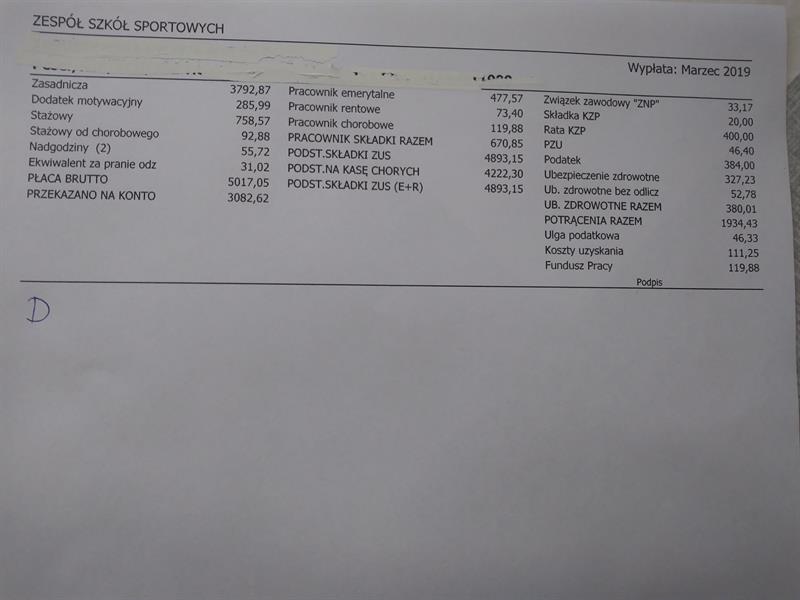 Podliczając kwoty z zaprezentowanego skanu wynika, że zarobek netto tego nauczyciela to ok. 3581 zł. Różnica wynika z dobrowolnych potrąceń (rata, ZZ, KZP, PZU).