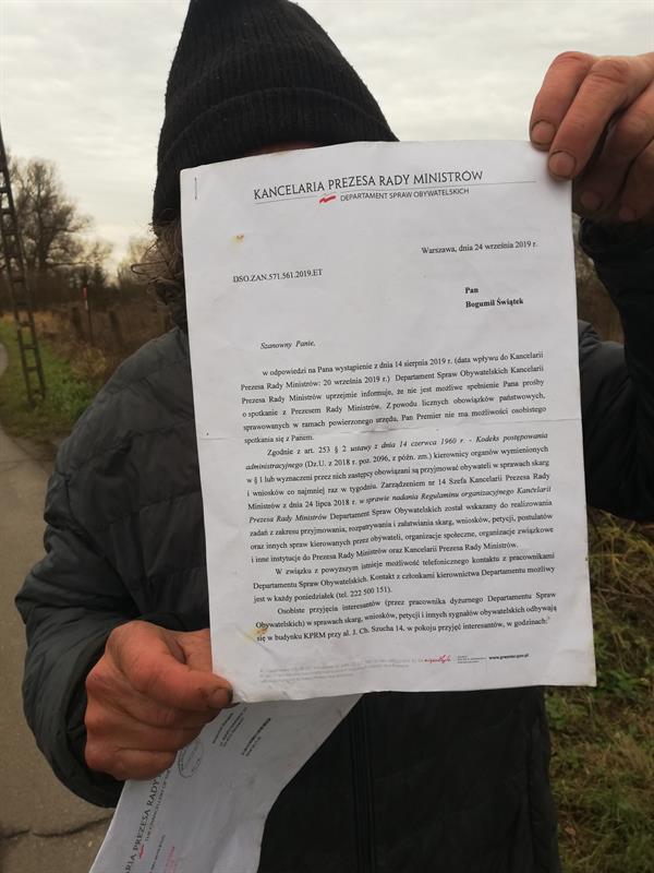 Po eksmisji wrócił jednak do swojego grożącego zawaleniem domu. Pola już nie uprawia. Po powodzi w 2011 roku, kiedy wysoka woda zabrała mu całe zbiory warzyw, stracił wiarę w sens uprawiania ziemi. Załamał się. Od kilku lat - jak dotąd bezskutecznie - próbuje wywalczyć w sądzie odszkodowanie za swoje straty od władz regionu, którym wówczas podlegał szczeciński zarząd melioracji. Zdaniem rolnika z Wyspy Puckiej, to właśnie Zachodniopomorski Zarząd Melioracji i Urządzeń Wodnych ponosi odpowiedzialność za powódź, w wyniku której poniósł straty oszacowane na prawie 60 tys. złotych.