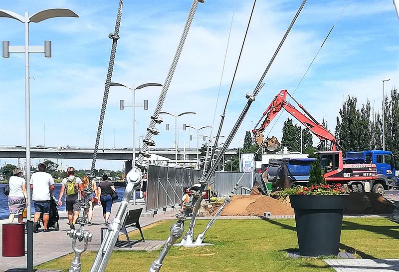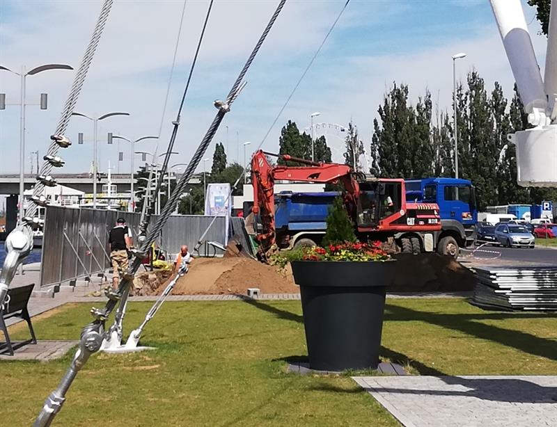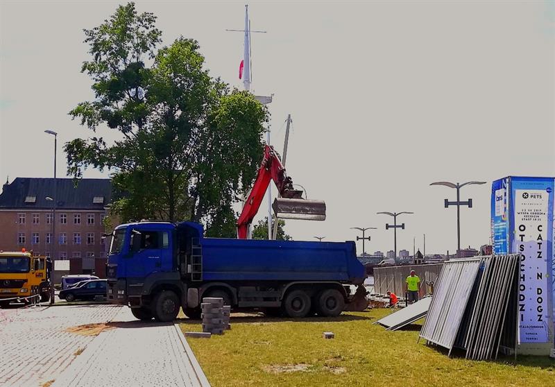 Mimo upałów, przy maszcie Maciejewicza roboty huk. Dosłownie. Rozpoczęła się bowiem budowa nowego pawilonu gastronomicznego na bulwarze Gdyńskim (nabrzeże Celne). Jest robiony wykop pod przyszłego „Admirała”.