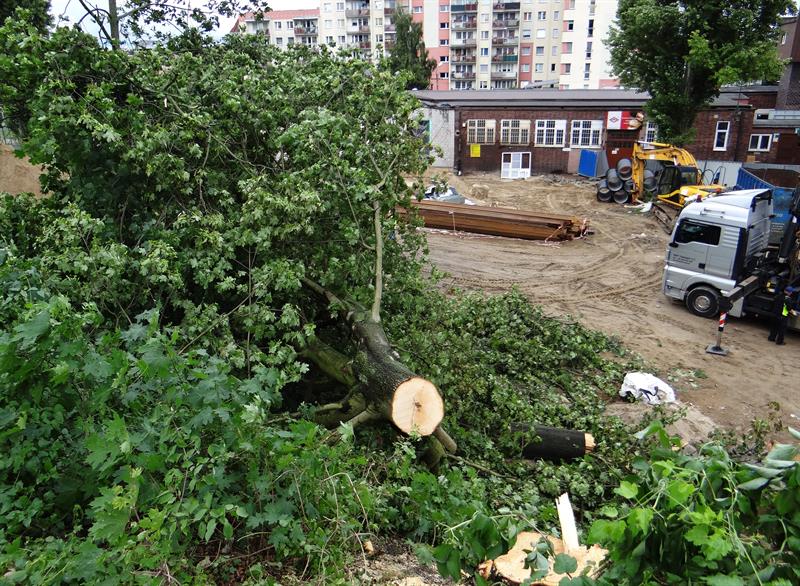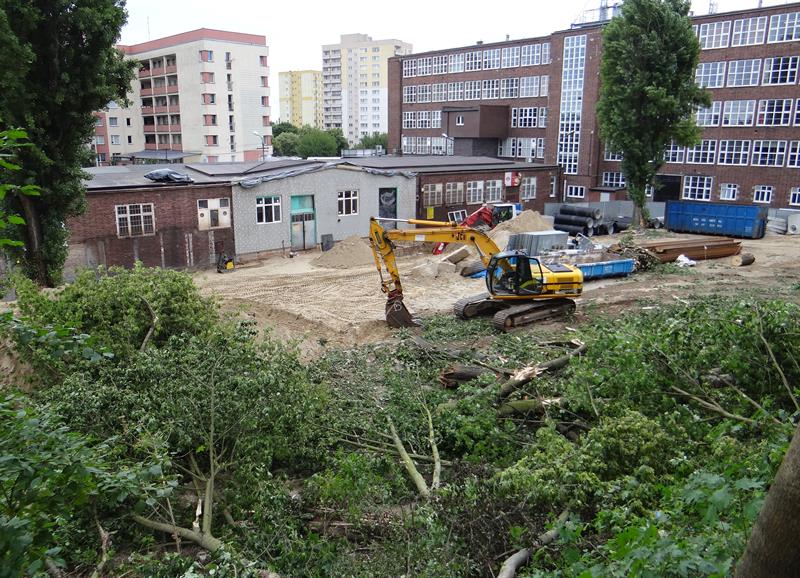 Przy ul. Janosika zostanie zbudowany apartamentowiec pn. Stettiner Residence. Prace rozpoczęto od uporządkowania terenu, czyli od usunięcia dziesiątek drzew i krzewów kolidujących z inwestycją. „Duże stare klony są wycinane w okresie lęgowym. Widać, jak ptaki uciekają na ostatnie z ocalałych koron, ale pewnie i je zaraz wytną. Przygnębiający obraz zniszczenia” - alarmował nas Czytelnik.