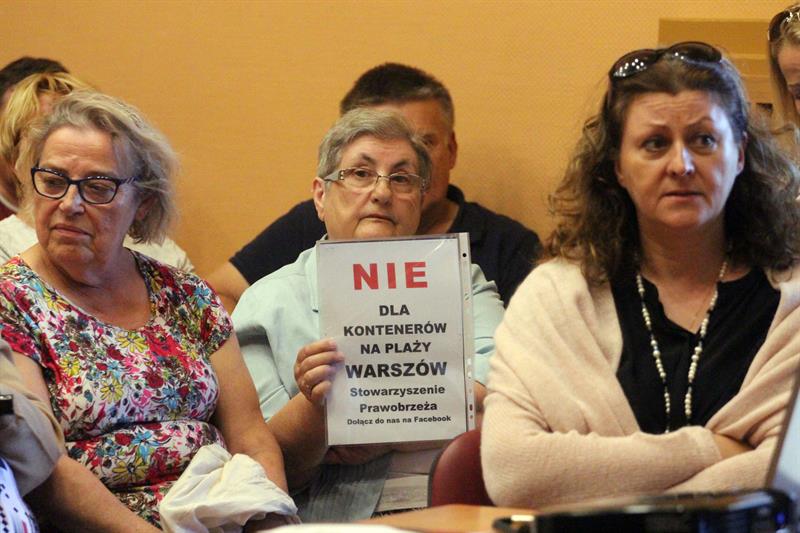 Spotkanie odbyło się w warszowskiej filii Miejskiego Domu Kultury. Mieszkańcy Warszowa w przypadku realizacji inwestycji bezpowrotnie stracą swoje kąpielisko. Wcześniej tutejszej społeczności odebrano już spory kawał plaży ze względu na budowę gazoportu i obiecywano, że port nie pokusi się o aneksję kolejnych terenów. Stało się inaczej i dzisiaj Zarząd Morskich Portów Szczecin i Świnoujście stara się przekonać do pomysłu budowy wielkiego terminala kontenerowego na wschód od gazoportu. Już podczas prezentacji filmiku przygotowanego na zlecenie władz portu zaczęło być nerwowo. – Wyłączyć tę propagandę! – padło z sali.