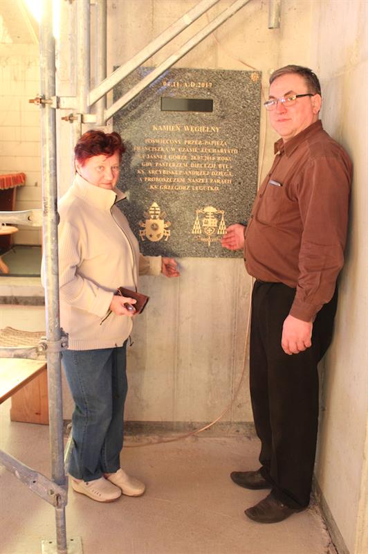 – Naszym miejscem wyznawania wiary była i jest wciąż ta kaplica. W niej od 27 lat spotykamy się na niedzielnych mszach – mówi Halina Zając, mieszkanka Wojcieszyna. Z radością patrzy jak „rośnie” kościół, w którego budowę jest bardzo zaangażowana, podobnie jak Tadeusz Banachomski.