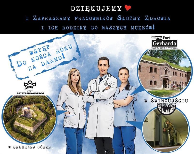 Na zdjęciu: W Muzeum Obrony Wybrzeża są wdzięczni służbie zdrowia. Zapraszają do darmowego zwiedzania do końca roku. – Gdy tylko będziemy mogli otworzyć nasze obiekty, to zapraszamy do nas. Dla nas jesteście VIP-ami – mówią muzealnicy ze Świnoujścia.