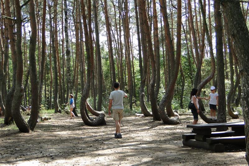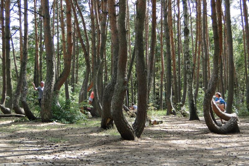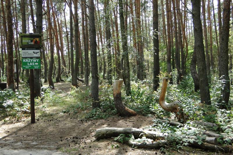 Pnie rosnących tu „krzywych" sosen wygięte są w podobny sposób na wysokości kilkudziesięciu centymetrów nad ziemią. Teren ten chętnie odwiedzany jest przez turystów, zwłaszcza latem można tu spotkać wiele osób, w tym także zorganizowane grupy. Niedawno jednego z naszych Czytelników zaniepokoiło, że część osobliwie zdeformowanych drzew została ścięta powyżej krzywizny, a ścięte fragmenty pozostawione zostały tuż obok.