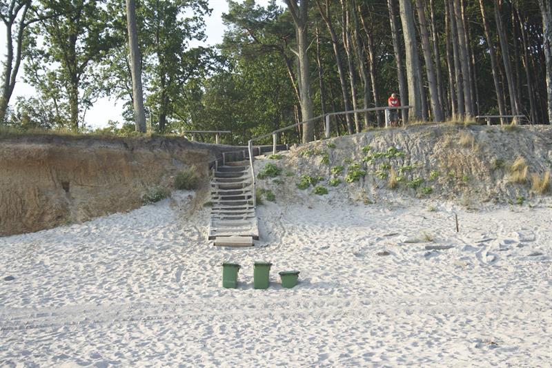 Od trzech lat wczasowicze wypoczywający w okolicach Kołczewa nie mają zejścia na plażę w Świętouściu, które istniało tam kilkadziesiąt lat. Potężny sztorm zmył połowę drewnianej konstrukcji. Do dziś jej nie naprawiono.