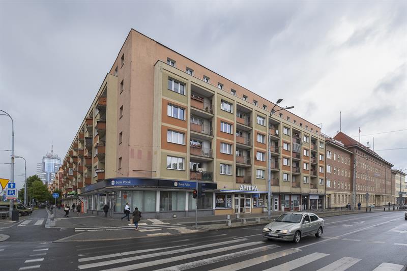 1. Przy pl. Orła Białego 6-9. Architekt Leonard Kotowski z „Miastoprojektu". Wykonawca Szczecińskie Przedsiębiorstwo Budownictwa Miejskiego (SPBM) nr 1.