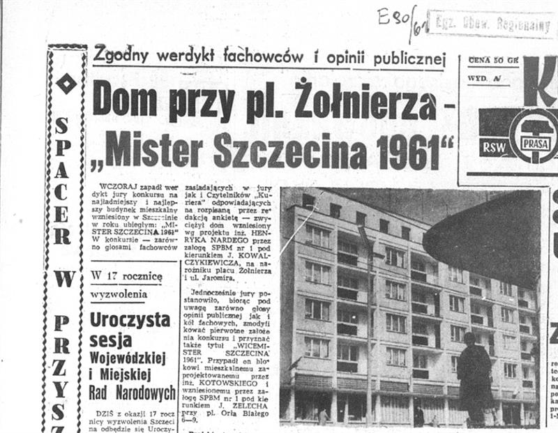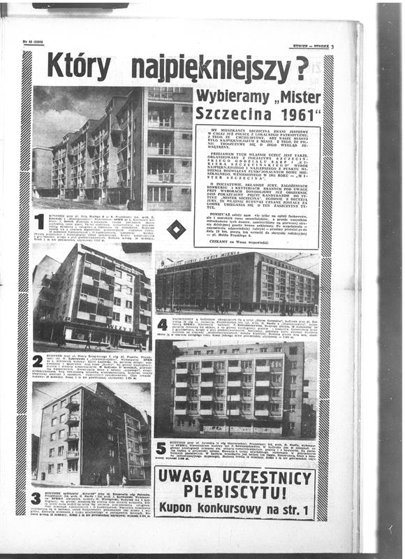 „My, mieszkańcy Szczecina, znani jesteśmy w całej już Polsce z lokalnego patriotyzmu. Przejawem tych właśnie uczuć jest także organizowany z inicjatywy szczecińskiego oddziału SARP i «Kuriera Szczecińskiego» wybór najpiękniejszego i najlepszego z punktu widzenia rozwiązań funkcjonalnych domu mieszkalnego, wzniesionego w 1961 roku" - czytamy w archiwalnym wydaniu naszej gazety.
