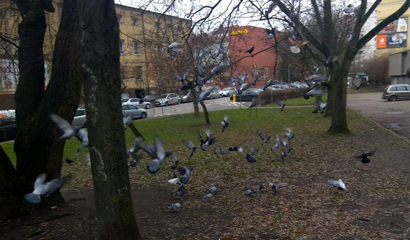 Wg mojej obserwacji masowe występowanie ptaków i tego, co one zostawiają w gęsto zabudowanym śródmieściu jest znakiem, że śródmieście jest po prostu wysypiskiem odpadów żywnościowych. Miejscem dla ptaków są parki, tereny zielone, a nie podwórka.