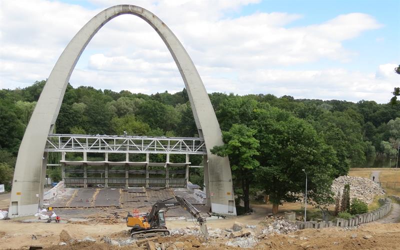 „Drzewa są w kolizji z przyjętymi rozwiązaniami projektowymi inwestycji" - magistrat tłumaczy cięcia w zieleni, jakie właśnie zostały przeprowadzone na terenie przebudowy Teatru Letniego w parku Kasprowicza.