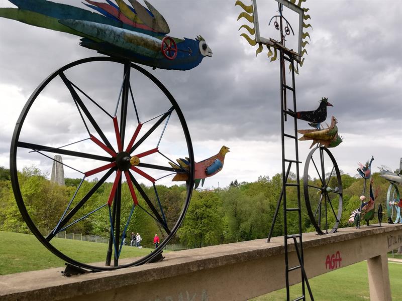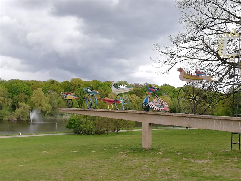 „Ptaki” – bo o nich mowa – wieńczą wzgórze parku Kasprowicza, opodal Teatru Letniego. Wcześniej wędrowały po Szczecinie: od Zamku Książąt Pomorskich po pl. Zgody. Latami niszczone i rozkradane (z 18 w niejasnych okolicznościach „wyparowało” aż 12 elementów), dopiero przed blisko 15 laty doczekały się kompleksowej renowacji. To wówczas rzeźbie przywrócono pierwotny kształt, a też nadano nową – obecną – kolorystykę.