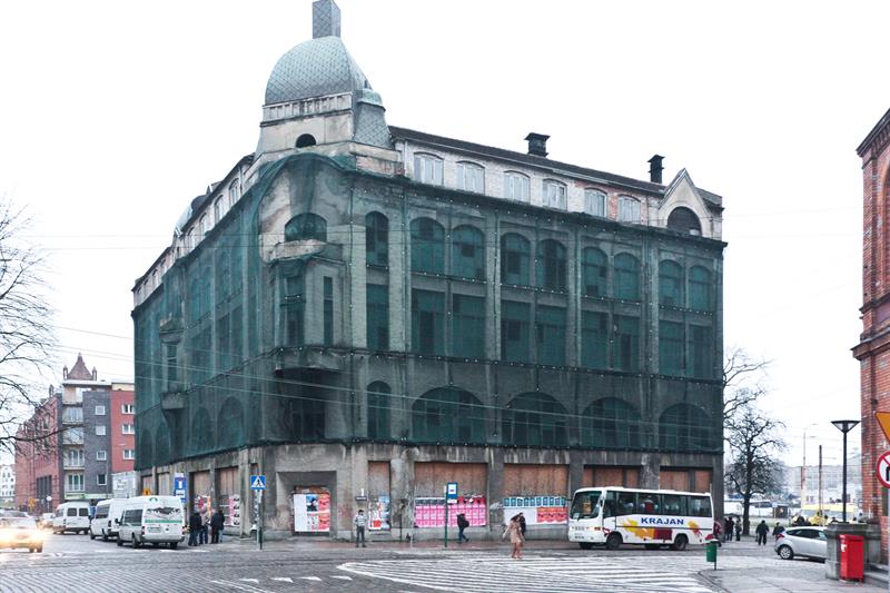 Pomiędzy odnowionymi fasadami zabytkowych budynków wokół pl. Tobruk już tylko jeden mur - od strony Odry - kłuje w oczy. To elewacja kamienicy przy współczesnej ul. Świętego Ducha - neobarokowej z elementami secesji, powstałej na przełomie XIX i XX wieku. O bogatej historii. W jej murach działała niegdyś winiarnia, biura, salon producenta męskiej mody, a też - do połowy ub. wieku - drukarnia. Dawny prestiżowy adres to współczesna ruina przy ul. Świętego Ducha.