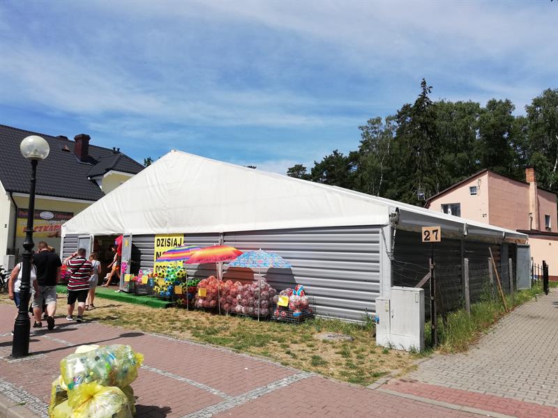 Teren, na którym stanął obiekt, należy do jednego z mieszkańców powiatu, który co roku wynajmuje go różnym podmiotom gospodarczym. W ub. roku był to plac zabaw dla dzieci, a teraz stanął blaszany namiot obity plandeką.