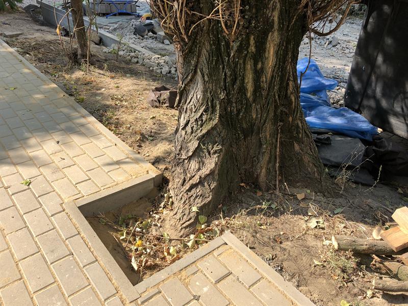 Roboty remontowe pomiędzy budynkami u zbiegu ulic Ofiar Oświęcimia i Kazimierza Królewicza rozpoczęły się na początku czerwca 2019 r. Według pani Wiktorii dopiero po interwencji u Straży Miejskiej drzewa zostały zabezpieczone.