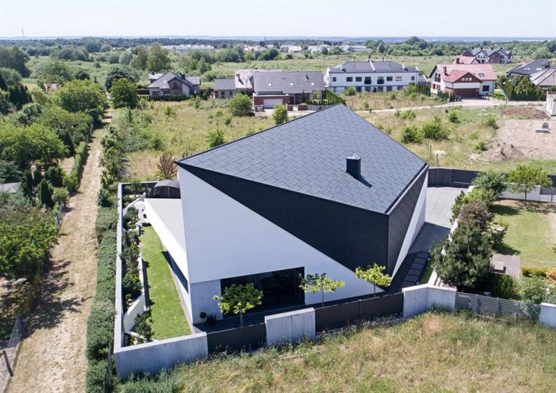 Dom jednorodzinny w Szczecinie – autorstwa architekta Marcina Tomaszewskiego – zwyciężył w ogólnopolskim Plebiscycie Polska Architektura XXL w kategorii „obiekty prywatne”. Willa zwraca na siebie uwagę nietypową bryłą oraz inteligentnym umieszczeniem jej na… kanciastej działce.