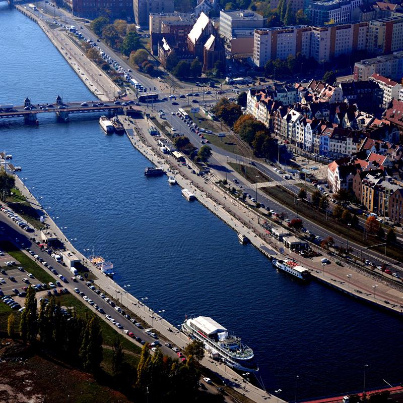Arterię nadodrzańską stworzono w latach 1947-49 w dwupoziomowym układzie, od Dworca Głównego do Wałów Chrobrego. Przez lata dolną - brukowaną - jezdnią jeździli kierowcy, którzy chcieli uniknąć świateł przed mostem Długim.