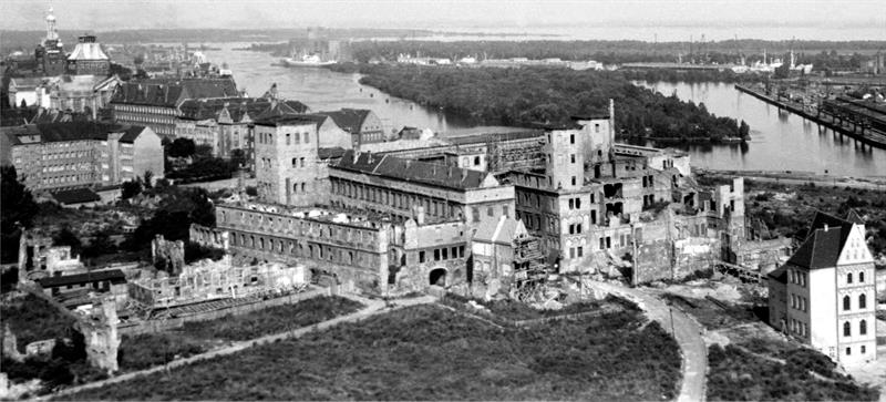 Była siedziba Gryfitów nie wyglądała najlepiej, gdy do Szczecina przybyli pierwsi Polacy. Nic dziwnego, skoro i cała okolica została zrujnowana w wyniku alianckich nalotów w dniu 17 sierpnia 1944 roku.