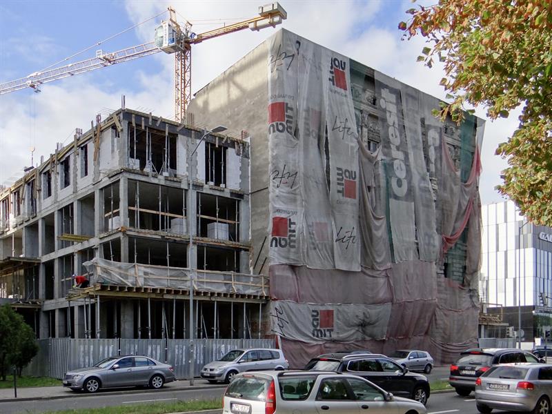 Boczne mury skrzydeł zabytkowej kamienicy przy ul. Jacka Malczewskiego 34 w Szczecinie powoli znikają za kondygnacjami nowej zabudowy. Tych ma być w sumie po sześć, nie licząc podziemia z miejscami do parkowania. A bogato zdobiona detalem architektonicznym, z warstwami zaniedbań narosłych przez minione dziesięciolecia, jej frontowa elewacja przejdzie gruntową renowację. Końcowy efekt rozpoczętego ponad rok temu przedsięwzięcia ma być do podziwiania - według planów inwestora, którym jest Zakład Budowlany Siemaszko - w pierwszym kwartale 2024 roku.