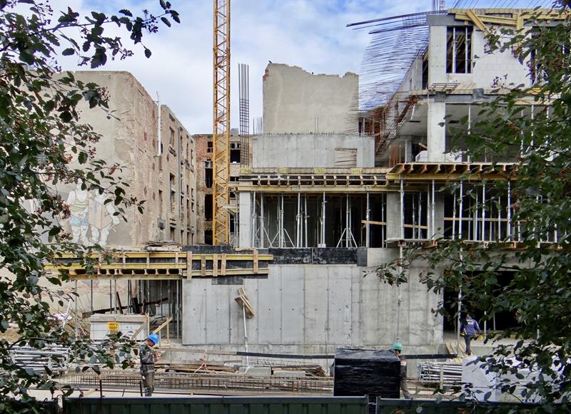- To co można dostrzec z ulicy to oczywiście tylko część prac, które obecnie się toczą - informuje Paweł Siemaszko, kierownik budowy. - Skupiamy się na realizacji stanu surowego, ale roboty są prowadzone jednocześnie na kilku frontach. W tej chwili powstaje więc zarówno część mieszkalna, jak i usługowa oraz garażowa. Wszystko idzie zgodnie z harmonogramem, który przyjęliśmy na początku inwestycji.