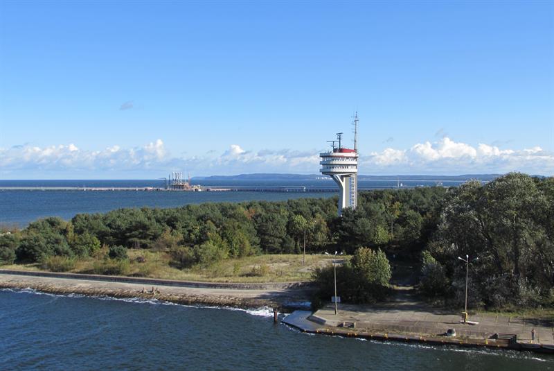 Budowa wieży kontroli ruchu statków ruszyła jeszcze w końcówce lat 60., a oddanie do użytku obiektu nastąpiło w 1971 roku. Obiekt o bardzo ciekawej, niebywałej jak na czasy, w których powstał, architekturze mieści się pomiędzy falochronem centralnym a latarnią morską i Fortem Gerharda. Dzięki charakterystycznemu kształtowi i lokalizacji w eksponowanym miejscu stał się jedną z wizytówek Świnoujścia, chociaż oczywiście pod względem popularności zdecydowanie ustępuje dwóm najpopularniejszym obiektom, także służącym statkom, po obu brzegach cieśniny Świna - stawie Młyny oraz wspomnianej latarni. Wieża od początku lat 70. pełni ważną funkcję nadzoru nad ruchem na torze wodnym