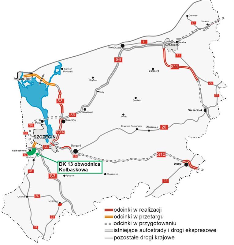 - To jedna z dziewięciu inwestycji w województwie zachodniopomorskim przewidzianych do realizacji w ramach rządowego Programu budowy 100 obwodnic - informuje Mateusz Grzeszczuk, główny specjalista ds. komunikacji społecznej w Generalnej Dyrekcji Dróg Krajowych i Autostrad Oddział w Szczecinie. - Dla wszystkich inwestycji z Programu 100 obwodnic w woj. zachodniopomorskim trwają już prace nad dokumentacją lub wszczęte zostały przetargi na jej opracowanie.