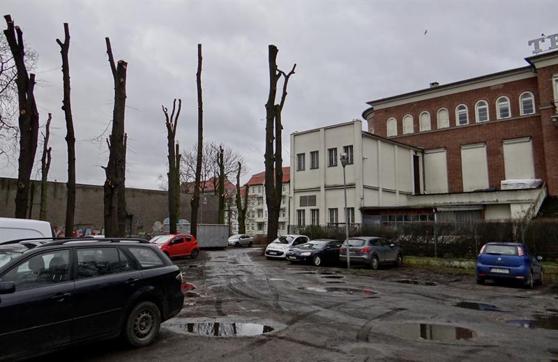 Przygnębiający obraz przyteatralnej skarpy, z której właśnie znikają korony starych drzew, to ledwie wstęp do rozpoczęcia budowy: przygotowania polegające na usunięciu wszystkiego co z nią koliduje. W tym wycięcie 39 drzew (lip, klonów, jesionów, kasztanowca, jarząbu, robinii, wiśni i dębu) oraz wykarczowanie 40 krzewów rosnących na skarpach od strony ul. Kapitańskiej i