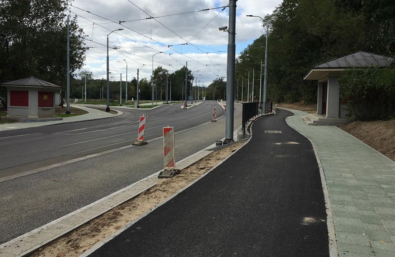Na jezdni wzdłuż torowiska na ul. Arkońskiej od pętli w Lesie Arkońskim pojawiła się już warstwa ścieralna nawierzchni. Wyjątkami są fragmenty nowej drogi z wbudowanym w nią torowiskiem od zakrętu na wysokości ul. Międzyparkowej od strony Polany Czerwonej oraz po obu stronach w rejonie powstającego nowego wiaduktu nad leśną aleją prowadzącą do Arkonki. Do ułożenia pozostaje nadal pas chodnika wraz ze ścieżką dla rowerów przy lesie, który prowadzi do teraz porządkowanego, a już wcześniej urządzonego parkingu naprzeciwko