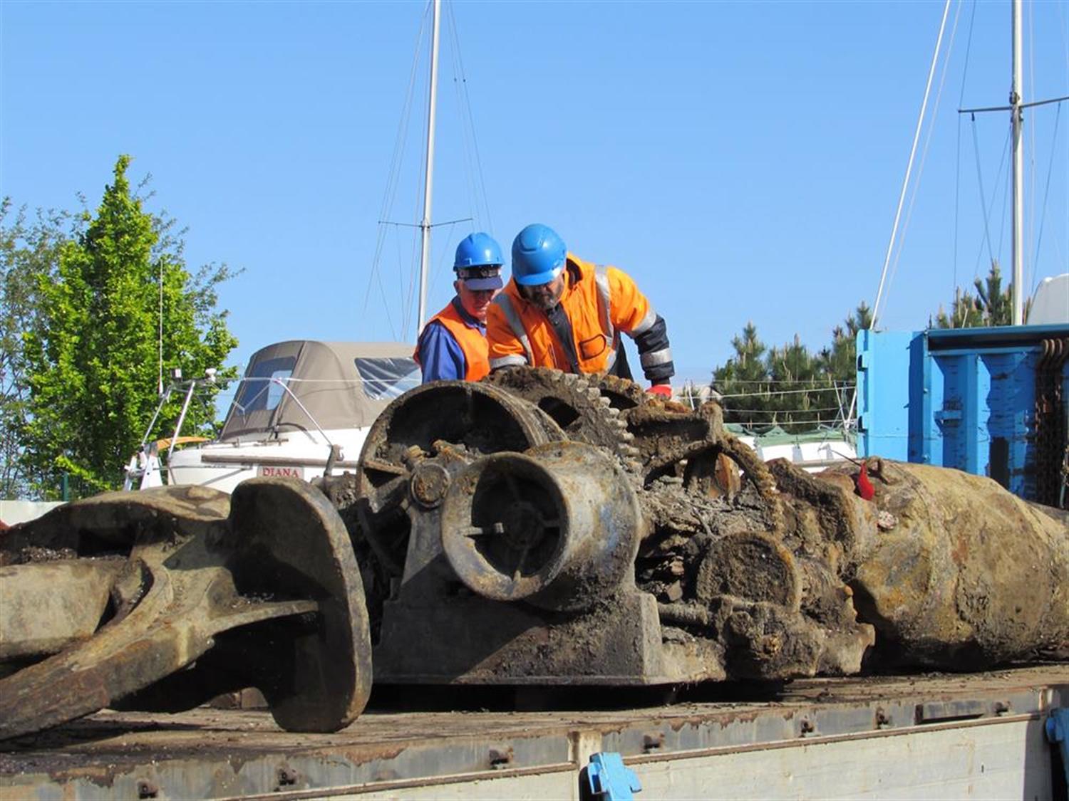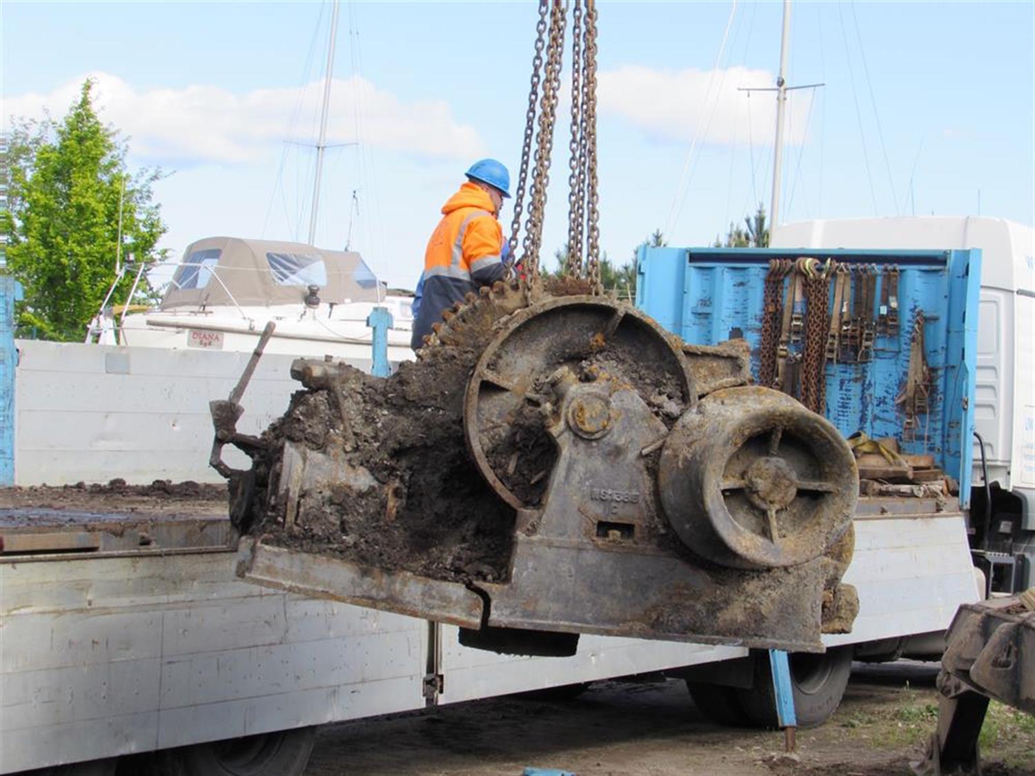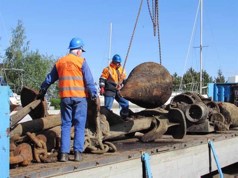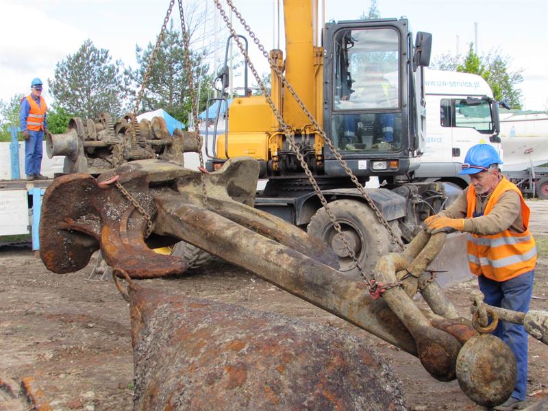 Współpraca Muzeum Oręża Polskiego w Kołobrzegu z Urzędem Morskim w Szczecinie przynosi kolejne interesujące efekty. We worek 12 maja na terenie siedziby firmy UW Service nad jeziorem Dąbie wyładowano kolejną grupę eksponatów wydobytych z wody podczas prowadzenia inwestycji „Modernizacja toru wodnego Świnoujście - Szczecin do głębokości 12,5 metra". Są wśród nich elementy wyposażenia jednostek pływających zarówno militarnych, jak i cywilnych, a także boje.