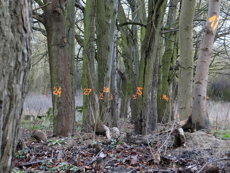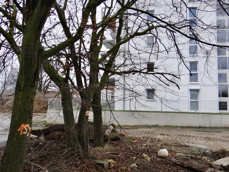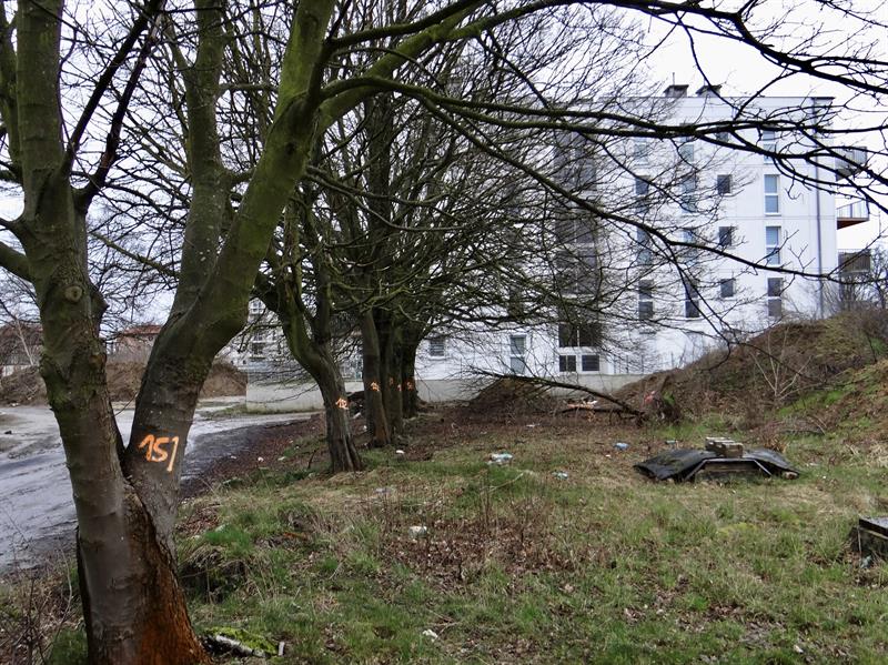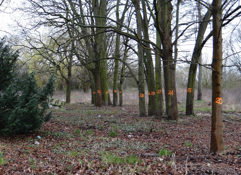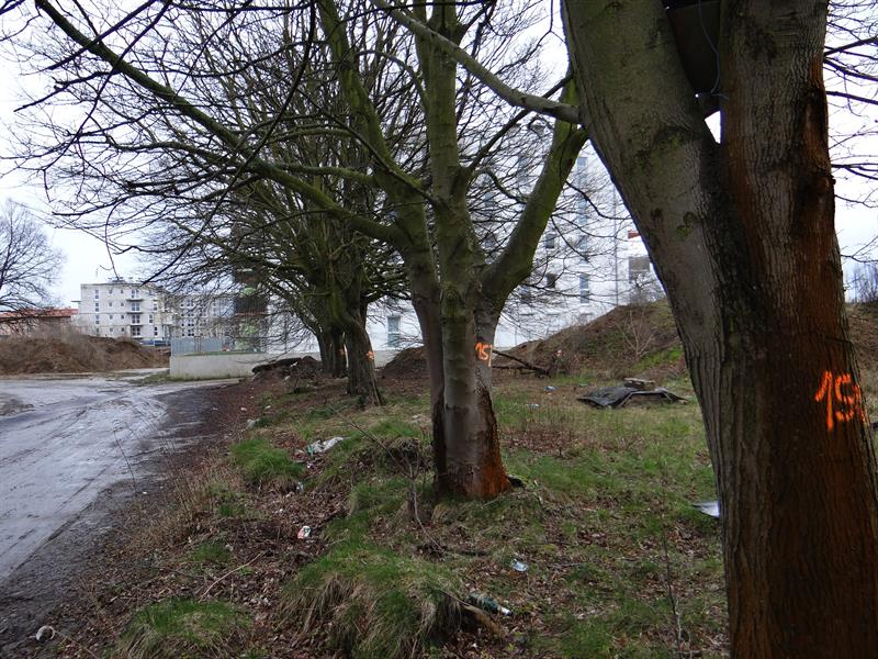 Niepokój budzą oznaczenia farbą widoczne na blisko 200 drzewach. Charakterystyczne dla planowanych wycinek w Szczecinie. Czy zieleń w sąsiedztwie budowanego osiedla, placówki straży granicznej oraz pętli tramwajowej na Krzekowie podzieli los parkowej enklawy niedawno zniszczonej przy ul. Janosika?