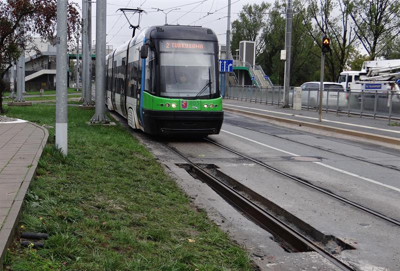 Od ponad tygodnia znów skuwane są fragmenty nawierzchni w nowym torowisku w obrębie pętli Basen Górniczy w Szczecinie. Takie odkrywki pojawią się jeszcze wzdłuż ul. Gdańskiej i ul. Energetyków. Odcinki szyn wstawione zostaną w sumie w kolejnych 22 miejscach, gdzie popękały spawy. Spółce Stanled ze Stargardu za zlecone naprawy Tramwaje Szczecińskie zapłacą ponad 809 tysięcy złotych.