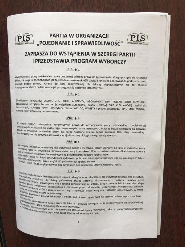 Kilka dni temu na słupach w okolicy Bramy Portowej pojawiły się ulotki z programem wyborczym opatrzone w widocznym miejscu skrótem PiS. Nie są to jednak materiały wyborcze rządzącej obecnie Zjednoczonej Prawicy, ale nikomu nieznanej partii „Pojednanie...