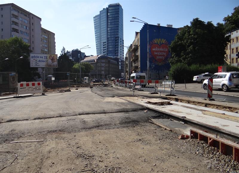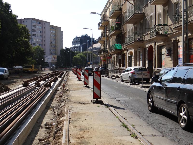 W dalszym ciągu prowadzone są prace związane z przebudową wprowadzone już w poprzednim etapie na odcinku od placu Rodła do wysokości skrzyżowania z ulicami Odzieżową i Ofiar Oświęcimia. Tam - przypomnijmy - nadal zablokowany jest m.in. przejazd w obrębie skrzyżowania alei Wyzwolenia z ulicami Jacka Malczewskiego i Ludomiła Rayskiego. Jednocześnie z ruchu kołowego wyłączone pozostają tam lewe pasy obu jej jezdni przyległe na tym odcinku do wydzielonego pasa nowego torowiska. Stan zaawansowania prac wskazuje, że