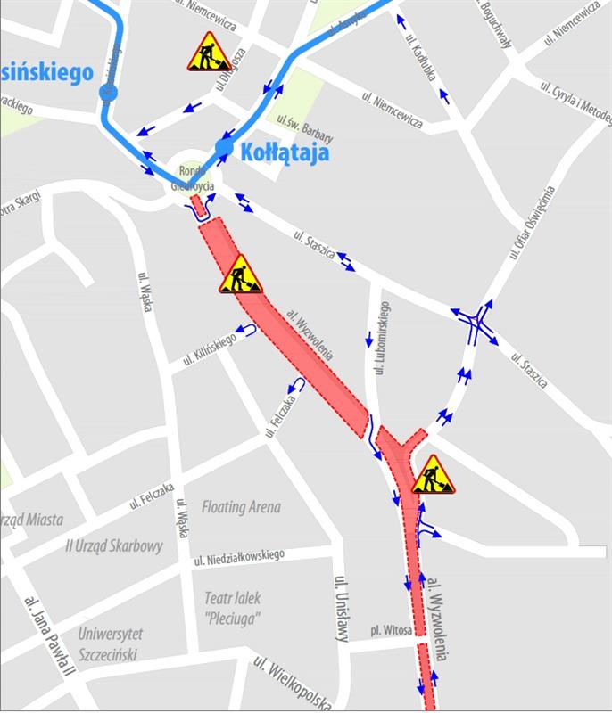 Od najbliższej soboty, 13 sierpnia, wprowadzony zostanie kolejny etap czasowej organizacji ruchu w związku z przebudową szczecińskich torowisk. Zmiany czekają zarówno kierowców, jak i pasażerów komunikacji miejskiej w alei Wyzwolenia. Ta od weekendu będzie całkowicie nieprzejezdna, także w kierunku centrum, na odcinku między rondem Jerzego Giedroycia a skrzyżowaniem z ul. Stanisława Lubomirskiego. Do tego czasu zmotoryzowani będą musieli też znaleźć alternatywne miejsca do parkowania swoich aut, bo chodniki, na których dotąd je ustawiali gęsiego, też pójdą do rozbiórki.