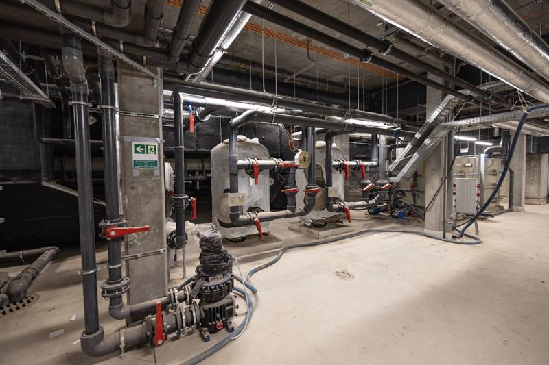 Znajdujące się kilka metrów pod ziemią podbasenie skrywa serce odpowiedzialne za prawidłowe funkcjonowanie basenów Fabryki Wody. To w tych przestrzeniach znajdują się instalacje odpowiedzialne za proces uzdatniania czy podgrzewania wody.