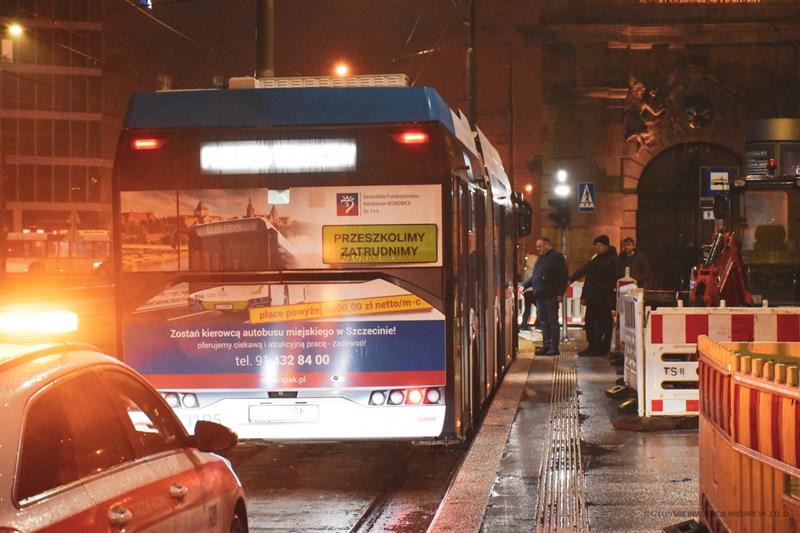 Nowy pas autobusowo-tramwajowy na placu Zwycięstwa w Szczecinie to element mający usprawnić przesiadkę z jednego środka komunikacji publicznej do drugiego. Niedawno przeprowadzono techniczny przejazd testowy autobusu po nowej trasie.