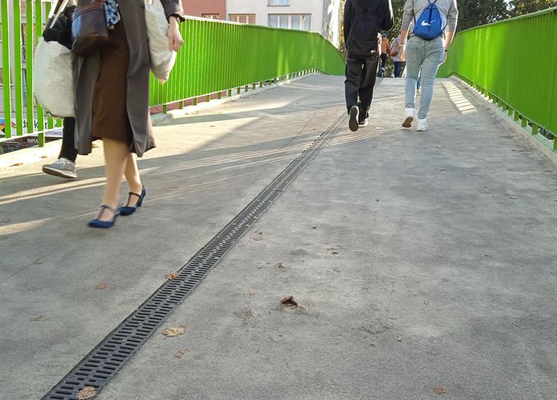 Pieszą kładką nad ul. Wyszyńskiego codziennie przechodzą tysiące szczecinian oraz turystów, podążających szlakiem reprezentacyjnych zabytków Starego Miasta. Teraz potykają się o pękające bąble jej nawierzchni. Żywiczna nakładka pęka na stykach z elementami konstrukcyjnymi kładki, odkształca się na ciągach pieszych oraz przy dylatacjach.