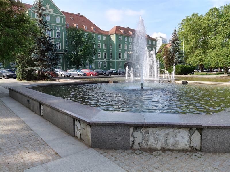 To jedna ze sztandarowych szczecińskich fontann, tryskających w najbardziej charakterystycznych punktach miasta. Jednak trudno nie zauważyć, że akurat „bartłomiejka" wymaga pilnej naprawy. Odpadają z niej kolejne płyty kamiennych okładzin.